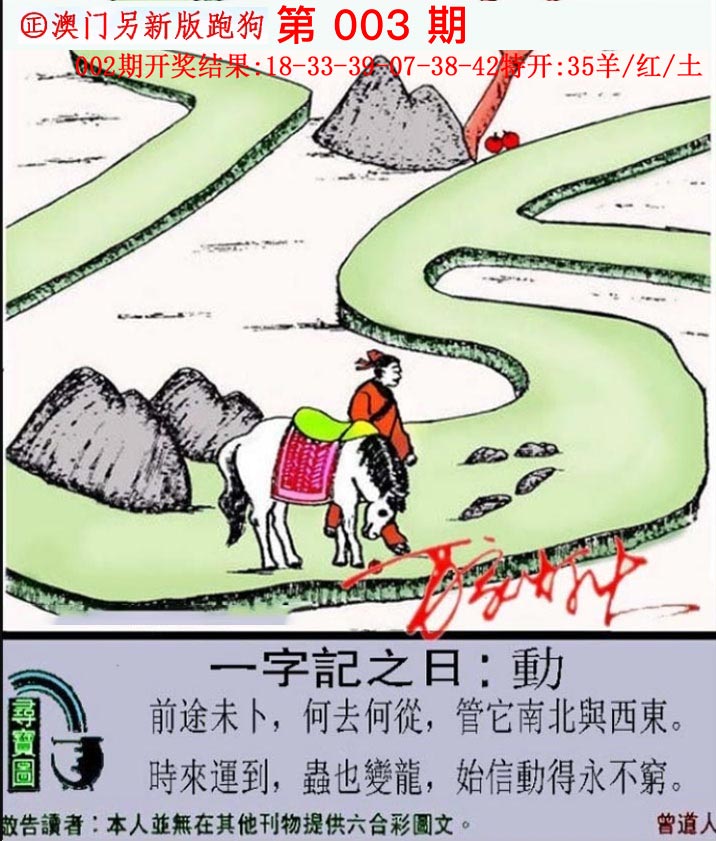 003期一字之曰〖动〗:前途未卜,何去何從,管它南北與西東。時來運到,蟲也變龍,始信動得永不窮。 |